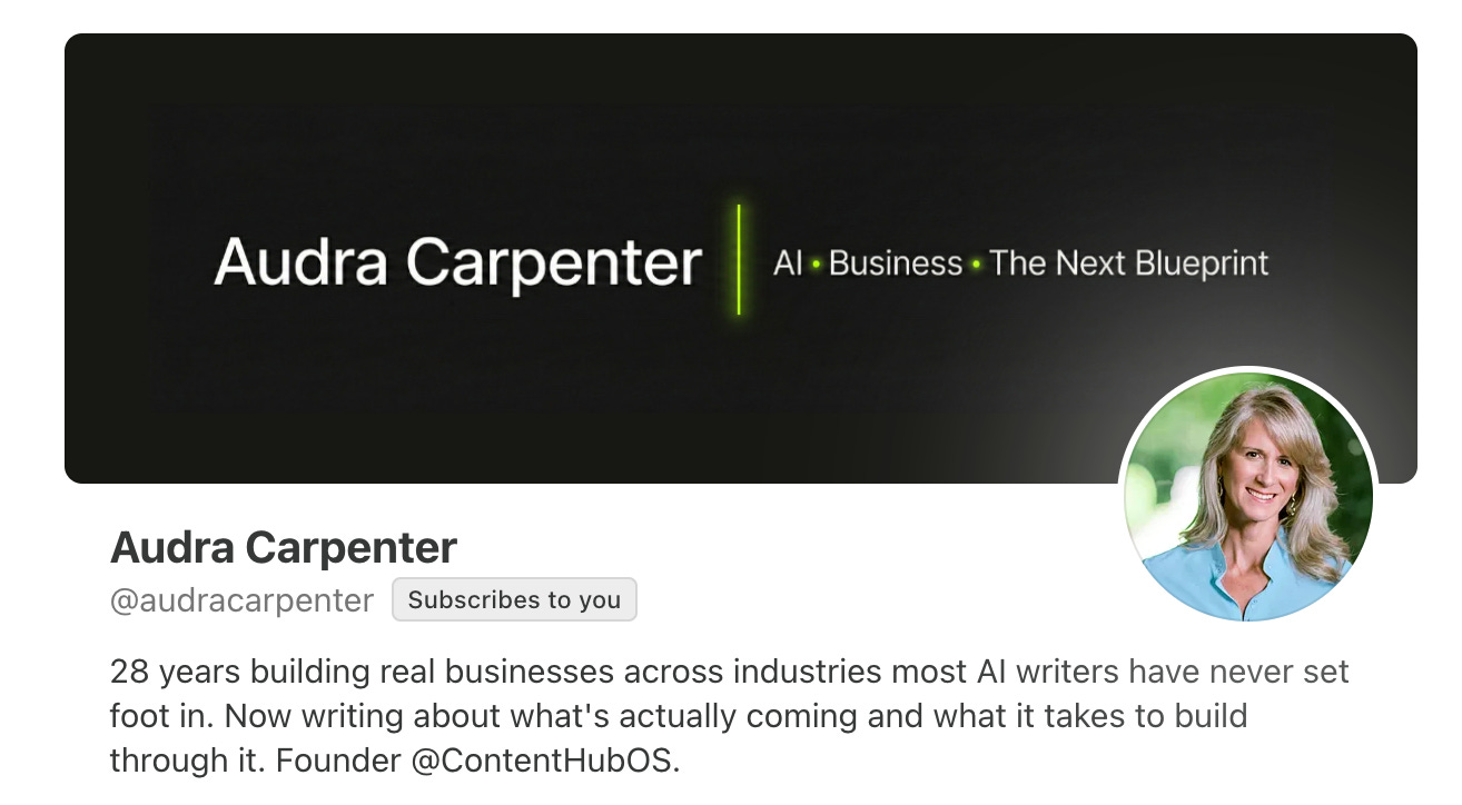 Content Hub OS Audra Carpenter — AI-led content system for founders and agencies. One idea in, dozens of assets out. Built around structured workflows and sequenced automation. Paid.