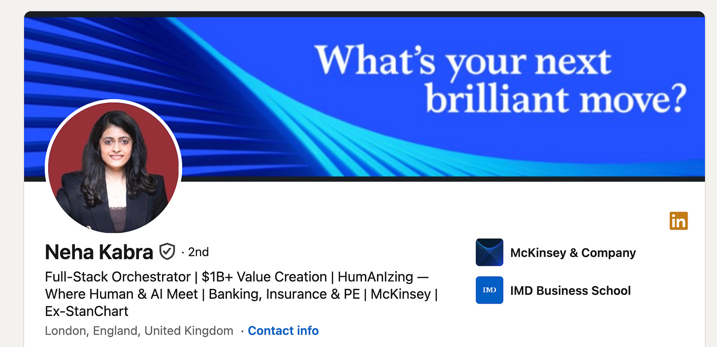 Neha Kabra spent two decades at McKinsey and inside banking.
